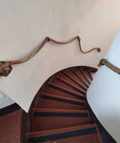 Foto 2 - Portoferraio. Torre del fanale della Stella. Scala interna a chiocciola a gradini che sale verso il tiburio della lanterna.