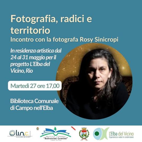 martedì 27 maggio alle ore 17,00 ospiteremo Rosy Sinicropi, fotografa in residenza per il progetto L'Elba del Vicino, Rio.