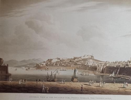 Foto di copertina - Veduta di Portoferraio, Inizio ottocento. A.S. Terreni . Incisione di Bubourg del 1814. British Library, Map Room,K.80.32b. Londra.