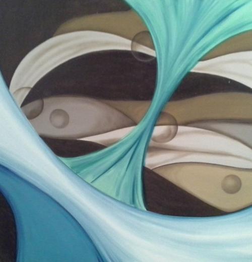Le visioni al microscopio mi affascinarono a tal punto da rendermi conto che le linee catturate nei vetrini erano le stesse meravigliose fluidità di un altro mio grande Maestro, Raffaele Ponte-Corvo la cui scuola pittorica si basava appunto su linee fluide, continue, di diversi spessori accostati; iniziai a disegnarle copiandole dal microscopio e in seguito a riempirle di colori a contrasto o sulla stessa base cromatica ma in tonalità degradanti, inizialmente piccole opere in carta e in seguito per la legge micro-macro le trasposi in tele di maggiori dimensioni che permettono di dare risalto alla sinuosità e fluidità delle linee e che sono quelle che espongo, assieme alla prima dipinta su carta per consentire al visitatore di comprendere il percorso evolutivo delle opere”.