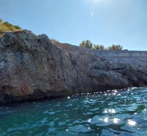 È proprio qui che dal livello dell’ acqua si trova l’imbocco basso di quell’ apertura che risale all’ interno del corridoio al piano di sopra, chiamata la “Porta di Nettuno”. La denominazione non è casuale: quando il mare è agitato, il cunicolo diventa una camera di compressione naturale. Le onde, incanalandosi con violenza, creano un effetto pistone che spinge tonnellate d’acqua a una velocità impressionante. Allora si odono boati sordi, simili a esplosioni soffocate, e improvvisi getti di schiuma bianca esplodono dentro la galleria superiore nord, quella orientata verso lo Scoglietto.