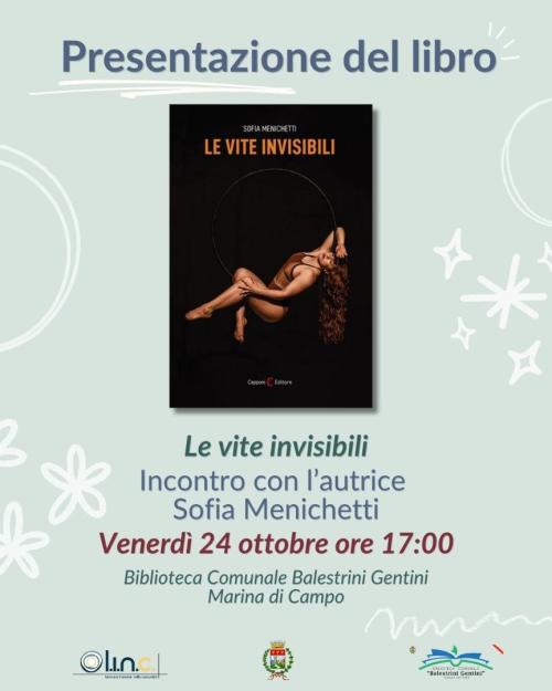 venerdì 24 ottobre alle 17:00 ospiteremo in biblioteca Sofia Menichetti per la presentazione del romanzo "Le vite invisibili".