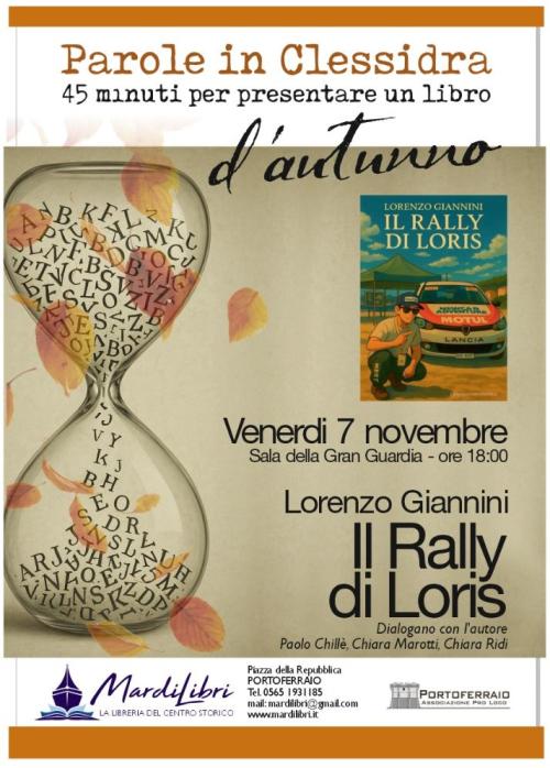 Appuntamento venerdì 7 novembre con la rassegna di MardiLibri "Parole in clessidra d'Autunno", nel nuovo incontro si terrà la presentazione de "Il Rally di Loris" di Lorenzo Giannini.