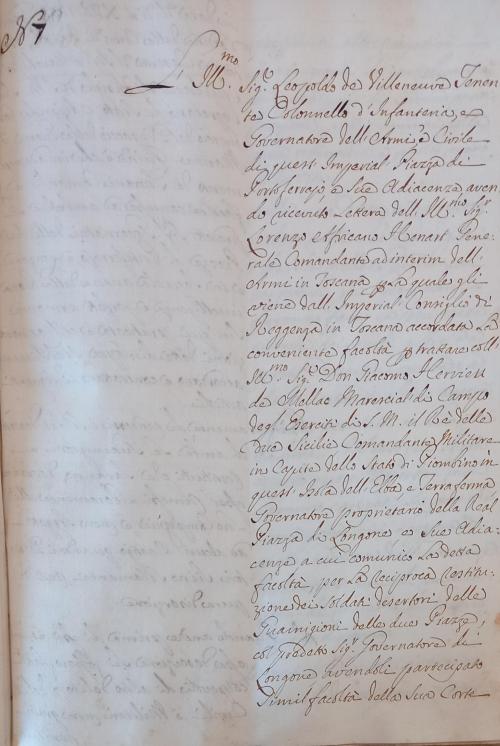 In data 18 febbraio 1756 per “la reciproca restituzione dei soldati disertori delle guarnigioni delle due piazze….l’Ill.mo Sig.re Leopoldo di Villaneuve Tenente Colonnello d’Infanteria e Governatore dell’armi e Civile di questa Imperial Piazza di Portoferraio e sue adiacenze“ avendo ricevuto dall’imperiale Consiglio di Reggenza in Firenze, la facoltà di trattare tramite “lettera dell’Ill.mo Sig Lorenzo Africano Henart generale comandante ad interim dell’Armi in Toscana”, come pure ha ricevuto la stessa facoltà a trattare dal suo governo lo “Ill.mo Sig.re Don Giacomo Hervien de Mellac maresciallo di campo degli eserciti di S.M. il re delle due Sicilie comandante militare in capite dello stato di Piombino in quest’isola dell’Elba e terraferma, governatore proprietario della Real Piazza di Longone e sue adiacenze… stabiliscono e contrattano li seguenti articoli”.