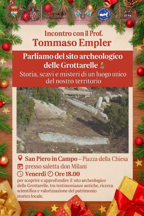 Parleremo del sito archeologico delle Grottarelle in un incontro pubblico con il prof. Tommaso Empler, che ci guiderà alla scoperta di uno dei luoghi più affascinanti e significativi del patrimonio archeologico locale, tra ricerca, interpretazione storica e legame con il paesaggio di San Piero.