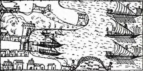 come a suo tempo furono fatte colà dentro due bellissime Galeazze a guisa di quelle di Venezia, lasciando a dirimpetto di quelli Stanzoni o Arsenali, la muraglia della Piazza assai sottile da potersi rompere con facilità e rifare con poca spesa e con prestezza.