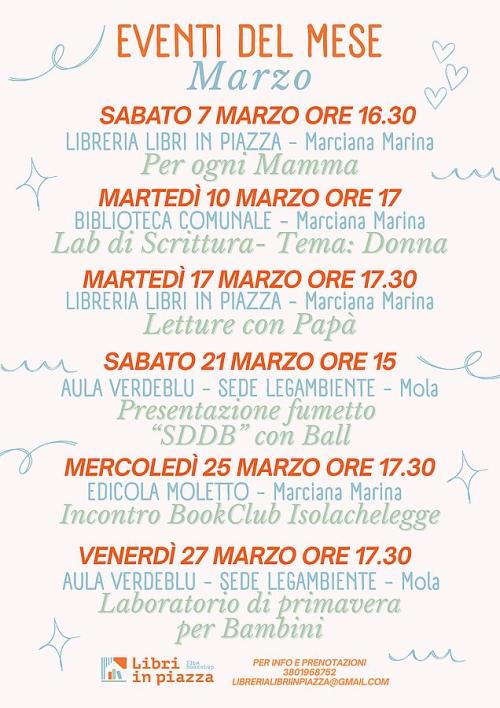 Il programma si apre Sabato 7 Marzo alle ore 16.30 presso la Libreria Libri in Piazza di Marciana Marina con il club Mamme Per ogni Mamma, un incontro speciale dedicato al mondo delle mamme tra condivisione e ascolto per ritagliarsi uno spazio di confronto, sostegno reciproco e ispirazione.