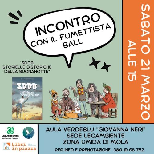 Sabato 21 marzo alle ore 15, all’Aula Verdeblu “Giovanna Neri”, nella suggestiva Zona Umida di Mola (lato Capoliveri), Legambiente Arcipelago Toscano organizza un incontro speciale con Ball, il fumettista elbano Andrea Palla.