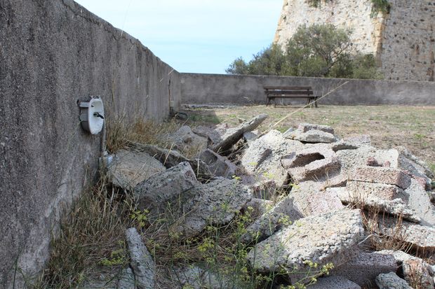 Ma bando alle ciance, iniziamo la visita! Partiamo subito con il primo bastione in cui ci imbattiamo, chiamato "Bastione Basso della Cornacchia": sin da qui potete ammirare un meraviglio paesaggio e potete adagiarvi sulle nostre panchine di ultima generazione: sono infatti assicurate saldamente al terreno tramite dei bellissimi blocchi di cemento (molto) armato, i quali fuoriescono fino all'altezza del sedere degli ospiti per offrire stimolanti minuti di relax, il tutto con un design mozzafiato.
