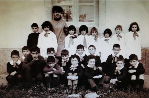 Roberto “il Pitturino” Lupi ha resuscitato da qualche cassetto una foto in bianco e nero che ci ha riportato nitidamente a più di 60 anni fa, con una giovanissima maestra sorridente e quella che non è una prima classe ma già una seconda che ha lasciato già diversi bocciati per la strada e trovato già diversi ripetenti.
