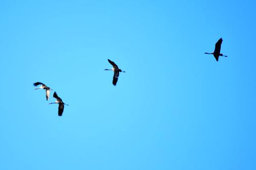 Le Gru vanno verso la Polonia, la Finlandia, la Russia, veleggiano pacificamente, verso la continuazione della loro specie, volano incuranti, verso altri cieli, ancora in questi giorni immpestati da giocattoli ipertecnologici, che in volo portano morte e distruzione, vergogne costruite dal più abile degli animali nocivi.