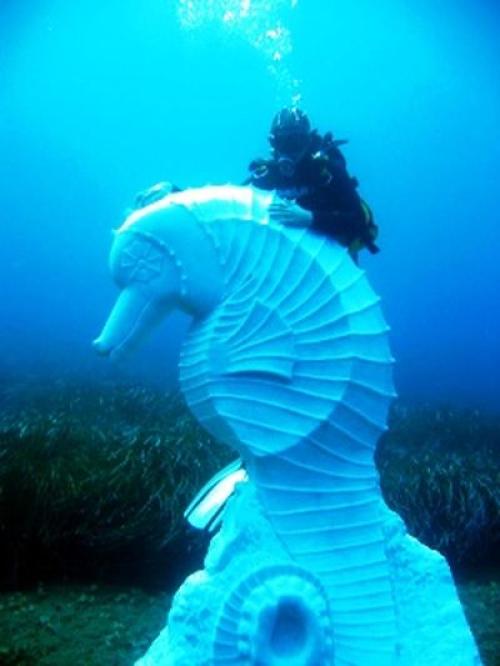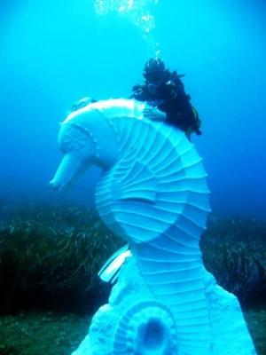 Anche questa volta si trattava di calare e stabilizzare nel blu grandi massi, nell'occasione di marmo carrarino e stavolta modellati in bellezza, a costituire un giardino subacqueo, un Olimpo alla rovescia, come ruzzolato dalle sovrastanti vette del Capanne e posato sul fondo nella tersa acqua del mare dell'Elba che guarda ad Ovest.