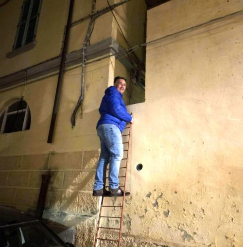 Come testimonia la foto di Miria Nicchi, l'amministratore rampante ha scalato (a rischio gropponata) il muro infilandosi in quella sorta di loculo che dà l'accesso alla caldaia, ed in dieci minuti ha ristabilito l'ordine termico.