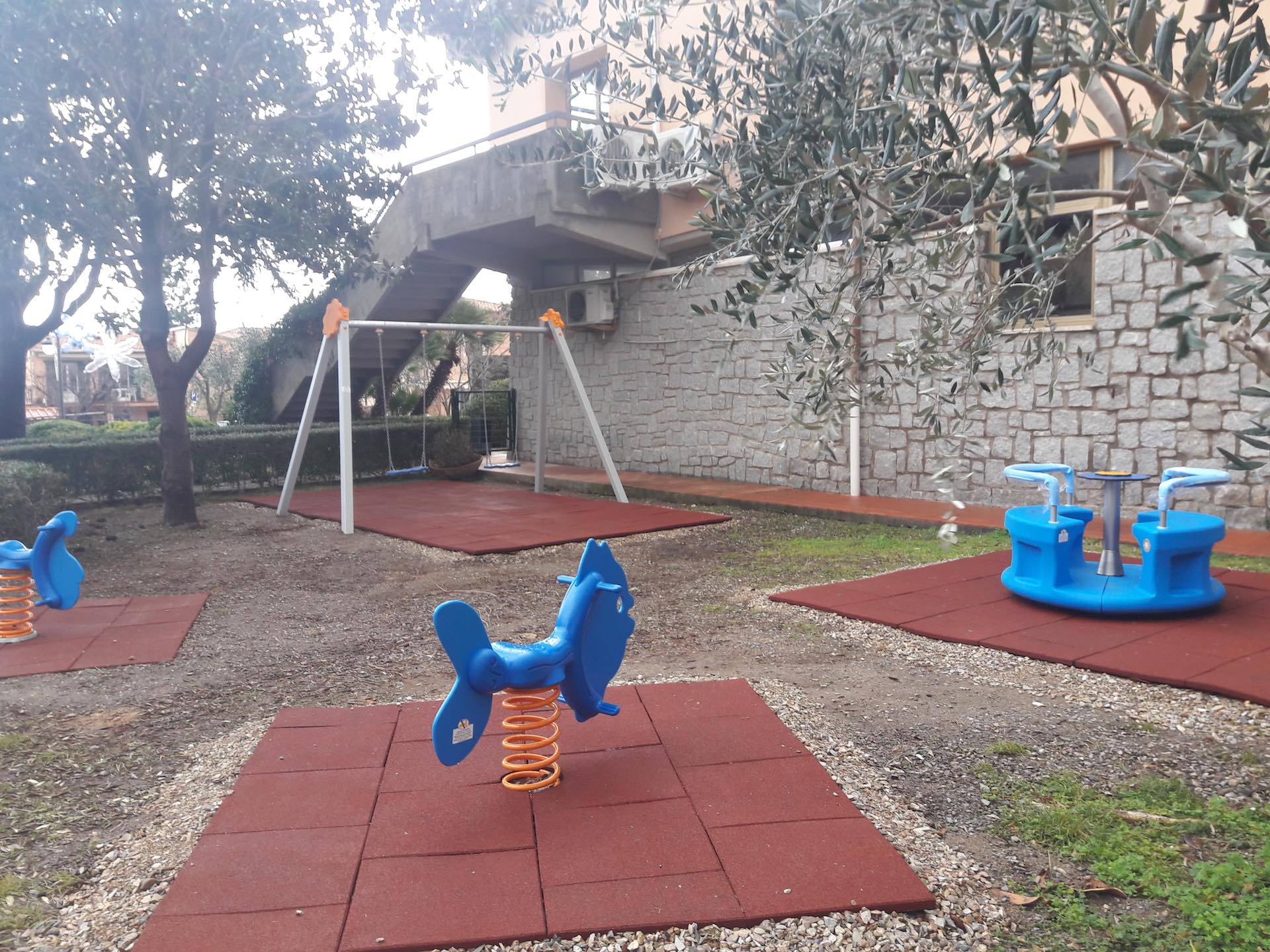 Giochi a molla, altalene, pareti e strutture per l'arrampicata, scivoli e un girello: tutte le attrezzature sono adatte a bambini dai 3 anni e sono un'ottima soluzione per mantenere i bimbi in forma giocando. Inoltre per rendere il gioco più divertente e accessibile a tutti è stata istallata un'altalena a “orsetto” con cintura di