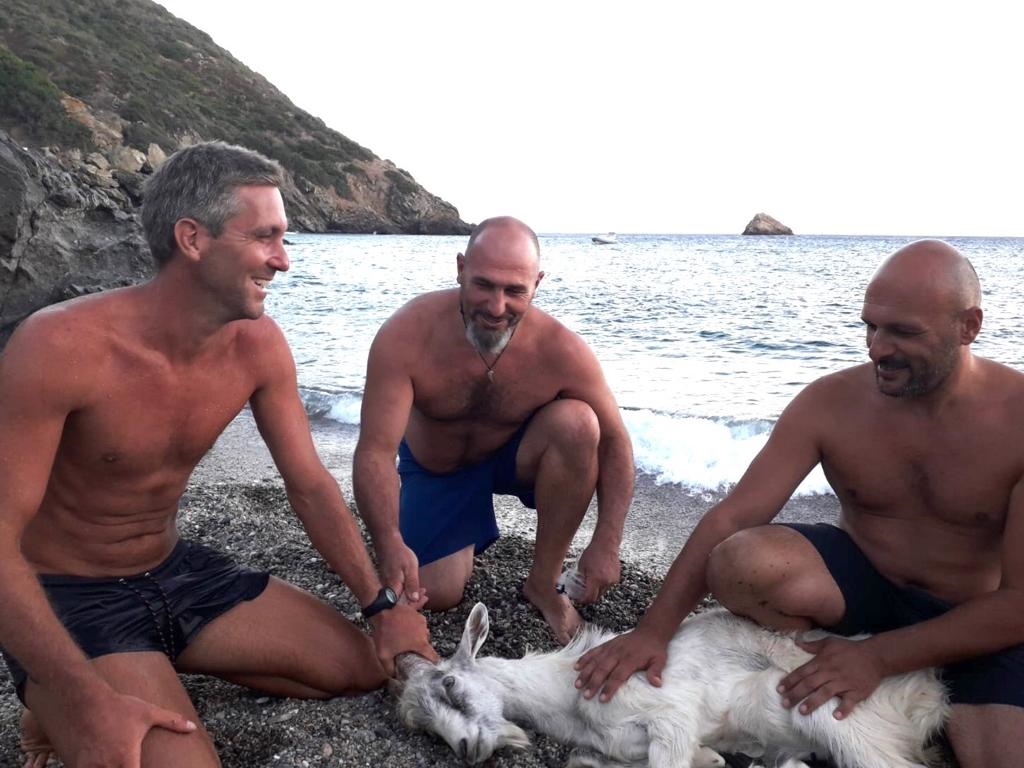 L’esemplare di capra selvatica sopravvissuta è stata portata sulla spiaggia di Remaiolo, curata, rifocillata per poi essere ricondotta nel suo habitat naturale.