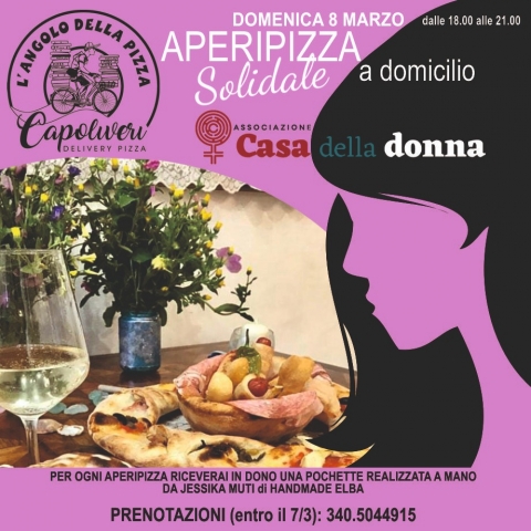 Aperipizza a domicilio solidale, in programma per domenica 8 marzo, dalle ore 18:00 alle 21:00, proposto dall'Angolo della Pizza, in piazza Matteotti, per aiutare concretamente le donne che hanno subito violenza.