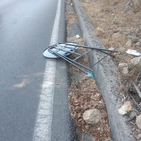 I vandali (vedi immagini a corredo) hanno rimosso segnali e lampade in parte scaraventandoli nella sottostante scarpata, in parte forse asportandoli.
