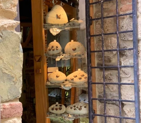 Le macchie blu di manganese sulle ghiaie lattate tradiscono la provenienza, si tratta di pietre provenienti da un tratto della costa ferajese a Nord, tra la spiaggia delle Ghiaie e quella di Sottobomba.