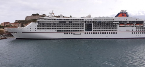 Finalmente una bella grande nave da crociera a Portoferraio.