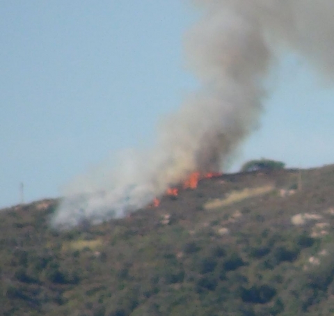 Le fiamme spinte dal vento stanno interessando una vasta porzione di vegetazione a macchia mediterranea. A terra sono impegnate 4 squadre di volontariato antincendio, 2 direttori operazioni del sistema regionale antincendio.