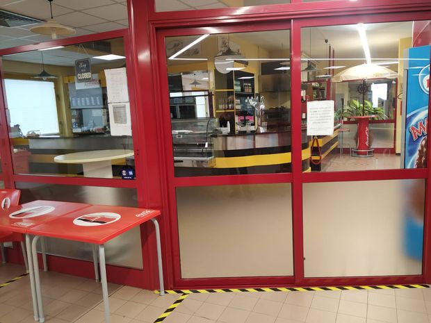 Risultano infatti chiusi entrambi i bar ai due livelli; perfino la macchinetta automatica dei caffè é fuori servizio.