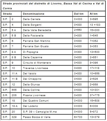 Di seguito si allega l’elenco delle strade provinciali interessate dall’ordinanza.