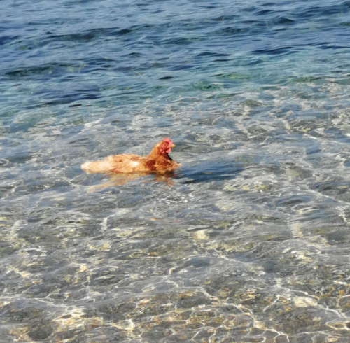 E' vero che siamo in una plaga per molti versi "creativa", dove è lecito stupirsi di poco, ma in genere le bizzarrie sono frutto di bipedi non alati, umani insomma, e la performance natatoria della gallina capoliverese ci pare davvero di notevole originalità.