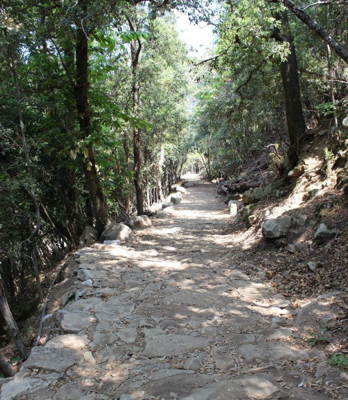 Nel corso delle attività di restauro, effettuate dall’Impresa Cellini e dirette dall’Architetto Alessandro Pastorelli, particolare attenzione è stata posta allo studio del sottofondo originario, al fine di restituire al sentiero un’efficace resistenza meccanica e permettere una maggiore permeabilità delle acque meteoriche. Si è quindi proceduto al recupero e alla catalogazione dei blocchi di granodiorite e alla posa dei tagliacque, fondamentali per ripristinare il naturale e storico ruscellamento delle acque superficiali, in modo da garantirne il corretto percorso fino a valle, scongiurando cedimenti del terreno. Infine, la posa dei lastroni superficiali è stata effettuata nel maggior rispetto possibile delle antiche collocazioni e delle tecniche costruttive del sentiero, al fine di restituirlo ai visitatori nella sua forma e solidità originarie.