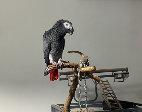 L'avventuroso pennuto all'atto del suo ritrovamento, oltre che scroccare del cibo offertogli, stava intrattenendo un gruppo di ospiti con le sue "performance" di rumorista (pronuncia poche parole ma sa imitare qualsiasi suono: dal telefono - per la gioia dei suoi "familiari" - al campanello della porta).