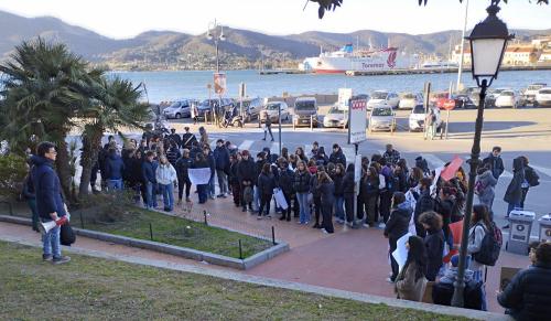 Un centinaio i giovani e le giovani, provenienti soprattutto dai plessi di Salita Napoleone e del Grigolo, che dalle ore 8 di questa mattina (6 febbraio) in Piazza Cavour, sfidando il vento gelido, hanno protestato contro Provincia di Livorno e Comune di Portoferraio per le condizioni in cui versano le loro scuole.