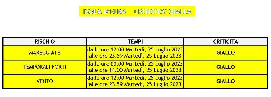 La sede della Protezione civile ha emanato un avviso di allerta gialla per pioggia, temporali forti e vento, valida dalle ore 12 alla mezzanotte di domani, martedi 25 luglio, su tutta la Regione.
