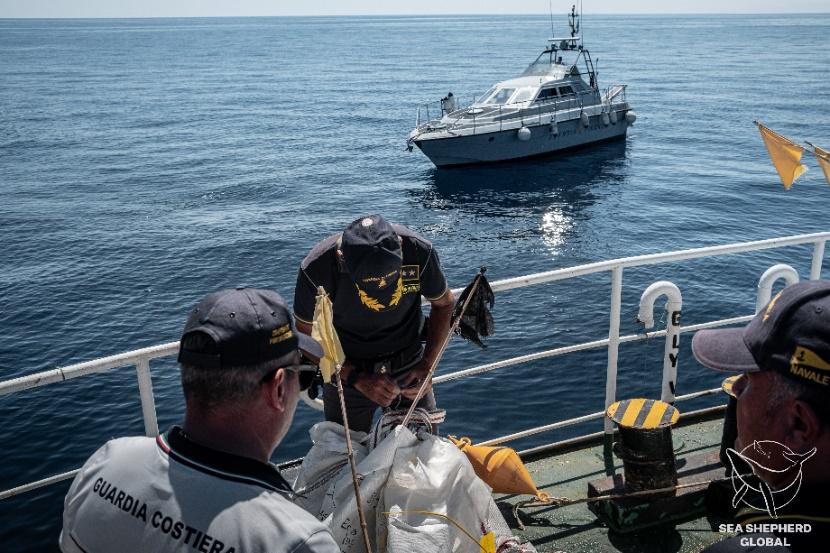 Gli attrezzi da pesca, sprovvisti di qualsivoglia marcatura e/o segnale identificativo e segnalati con bidoni, bandierine e polistirolo, sono stati recuperati a bordo della Motonave “Sea Eagle” della “Sea Sheperd Italia”, per il successivo sbarco nel porto di Piombino.