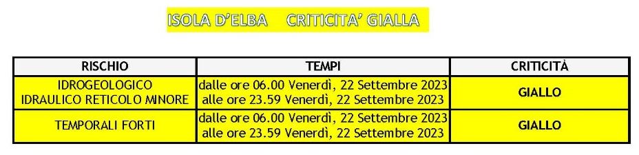 Maltempo in arrivo in Toscana e per la giornata di domani 22 settembre la Sala operativa della Protezione civile regionale ha emesso un codice giallo per temporali forti e per rischio idrogeologico e idraulico del reticolo minore già a partire dalla mezzanotte di oggi. La vigilanza sarà in vigore su tutta la Regione per tutta la giornata di venerdì.