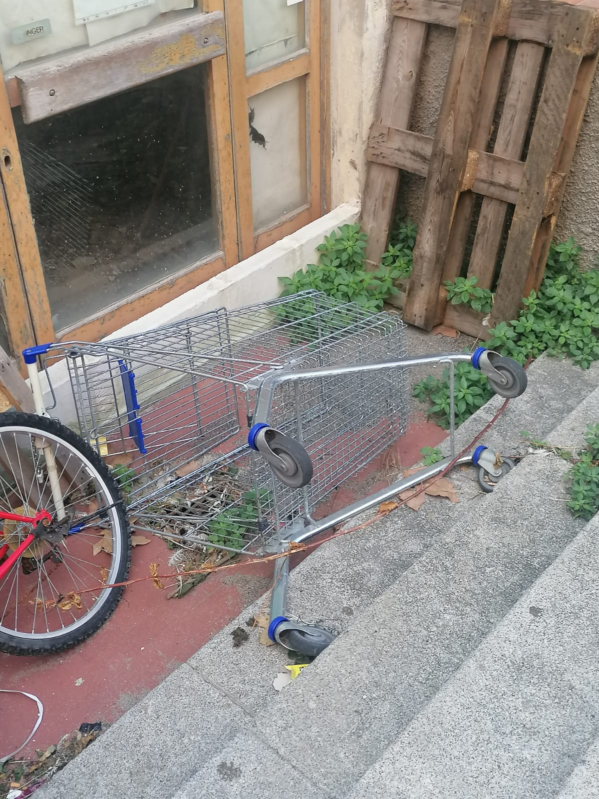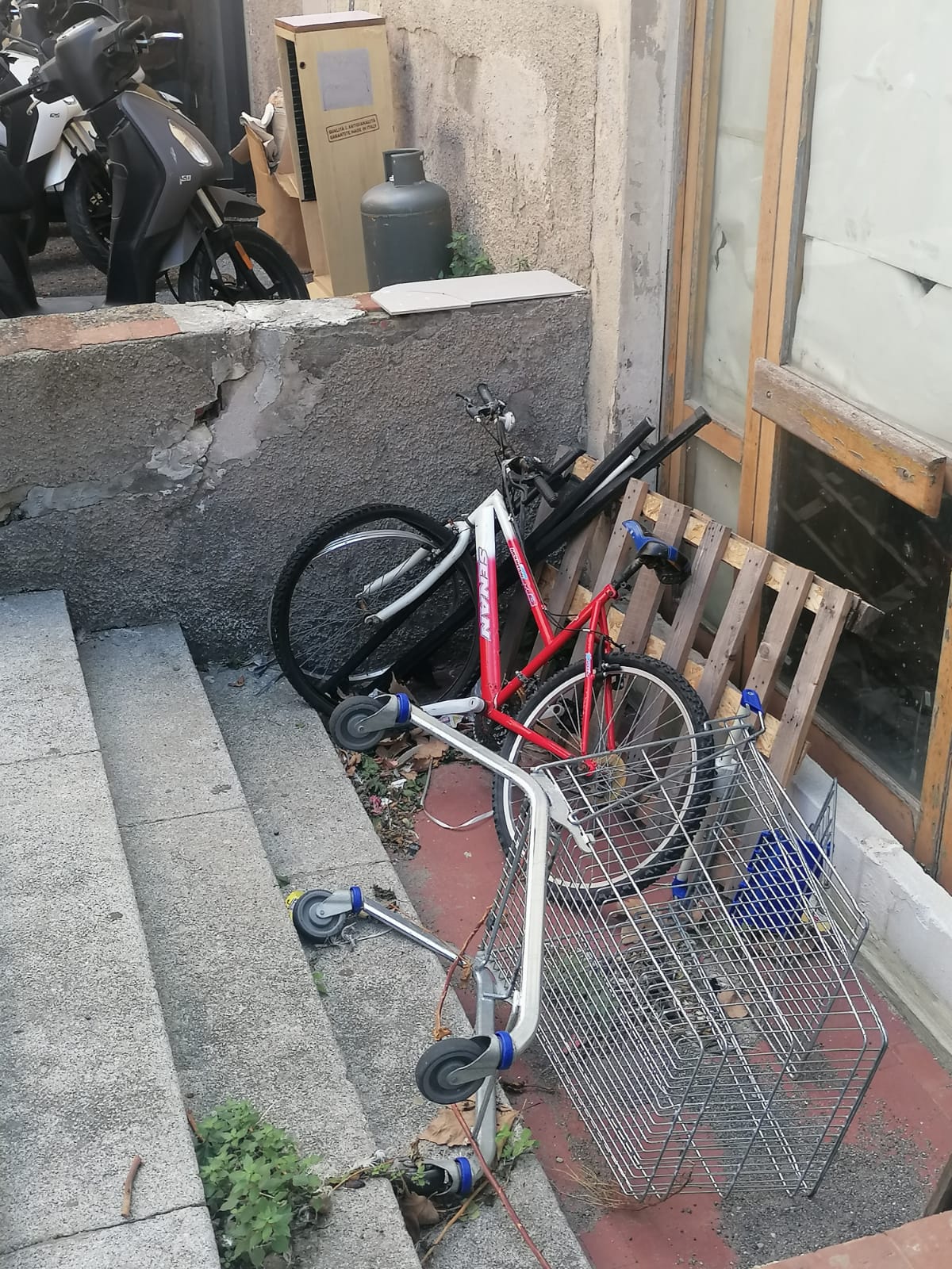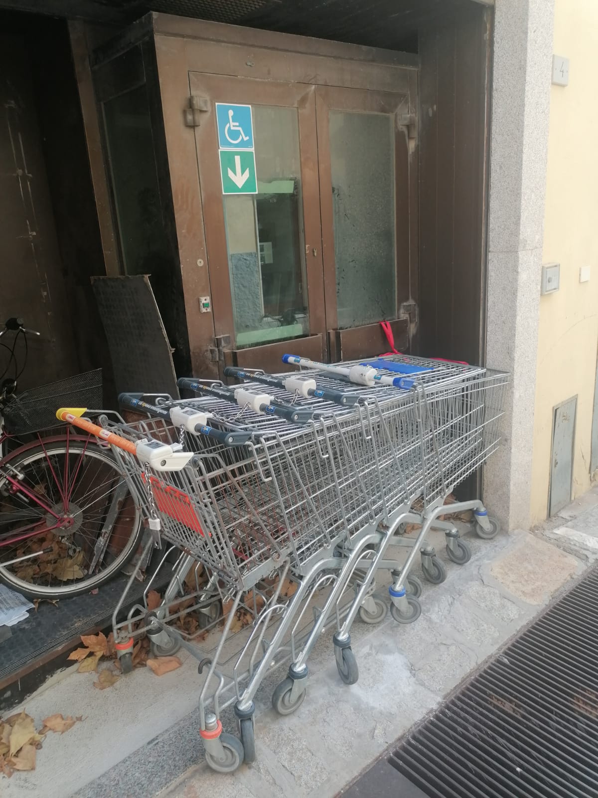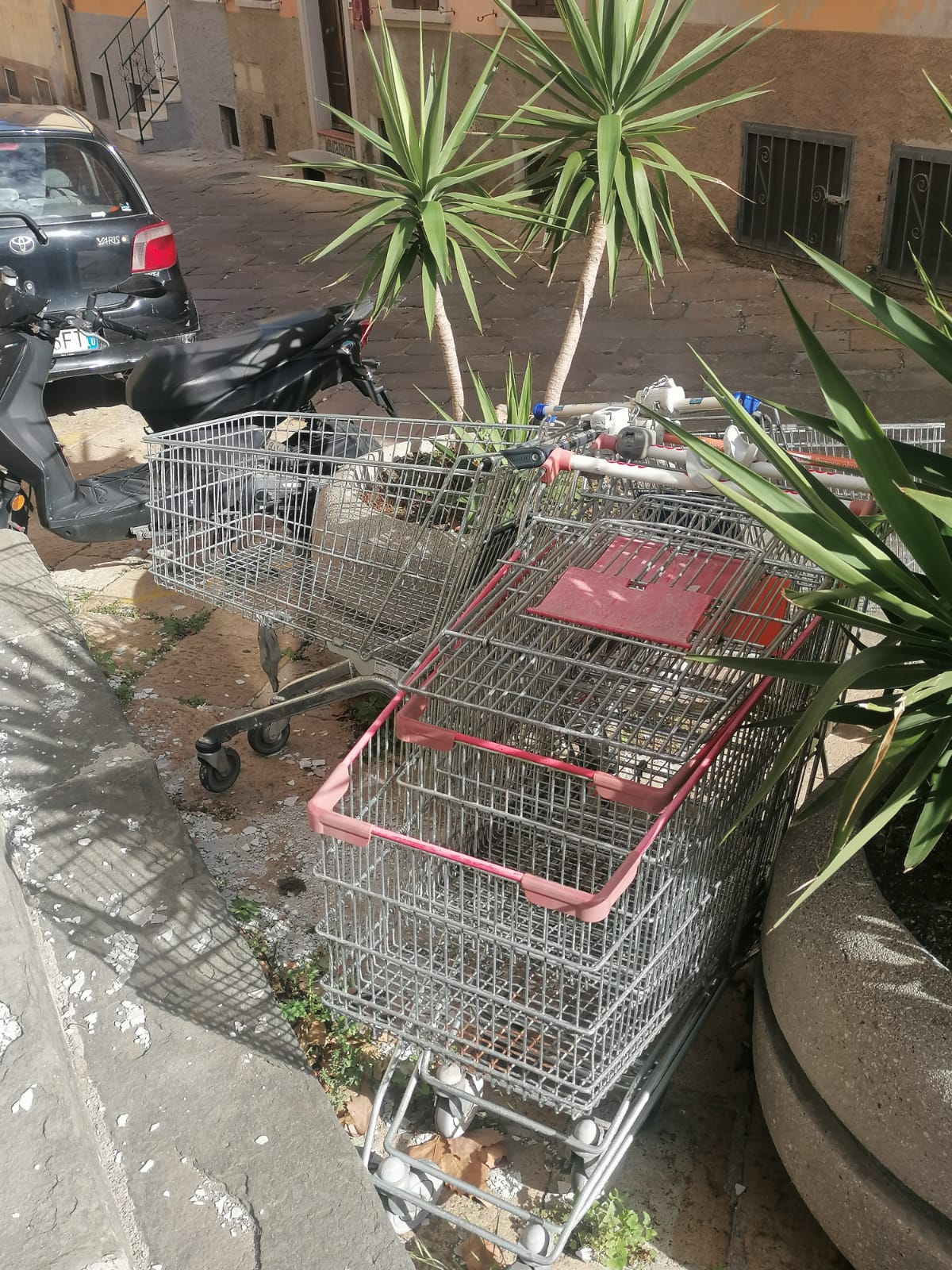 Abbandonati in gruppi (probabilmente usati quindi dalle stesse persone) carrelli della spessa fanno bella mostra di sè ormai da giorni.