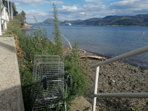 "Spettacolo, natura, decoro e civiltà in 500 metri nel centro storico di Portoferraio. Scusate, ma gli oltre 40 carrelli dei vari supermercati di Portoferraio, chi li deve togliere? Chiedo scusa in varie lingue del mondo!!!"