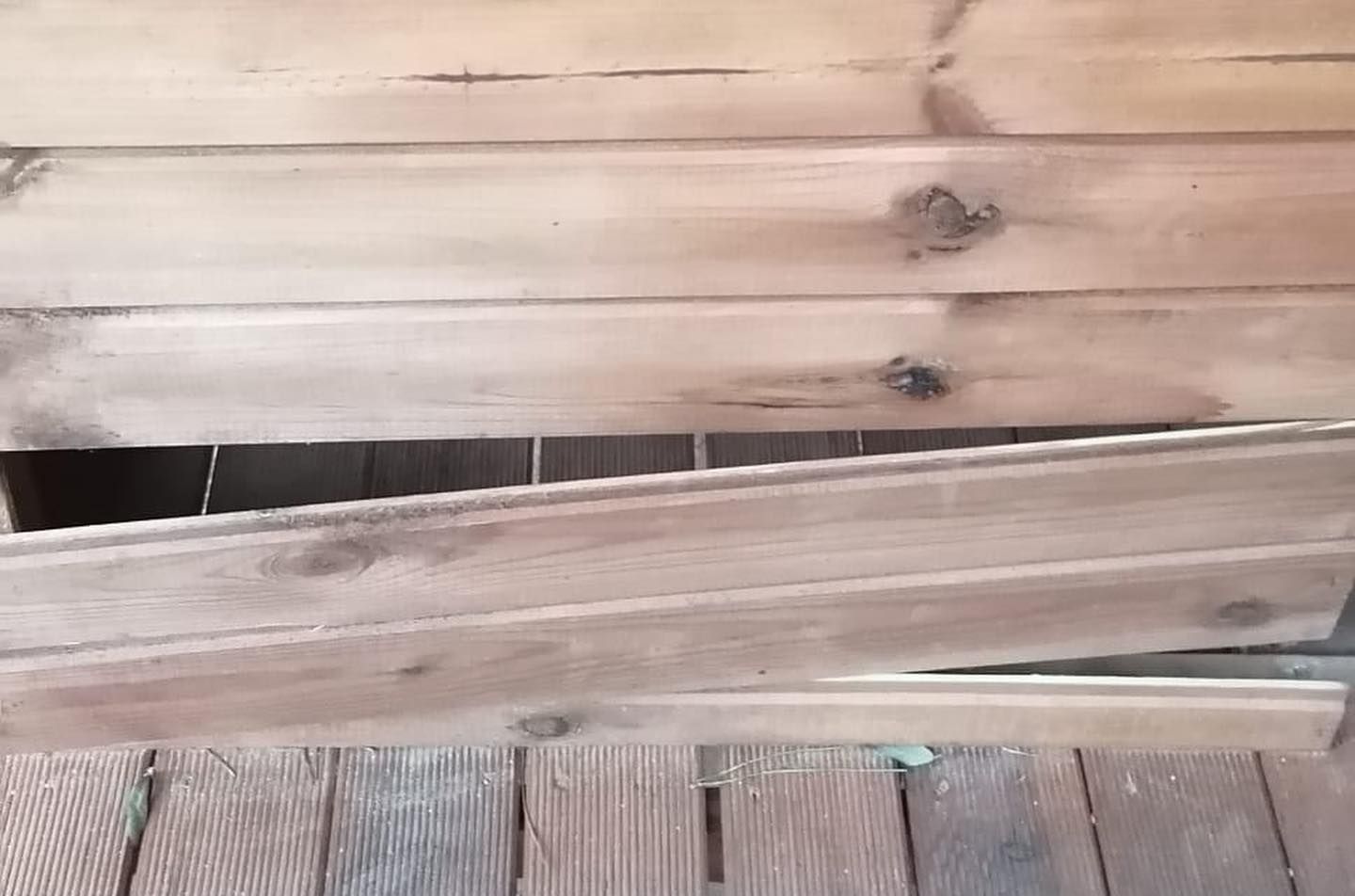 Oltre ai danni subiti dalla casina qualche settimana fa e poi sistemati, stavolta qualcuno si è divertito a sfondarla a calci.