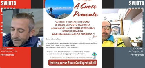 - con bonifico bancario intestato alla Misericordia di Pomonte e Chiessi IBAN IT11Q0503470700000000108141 causale: donazione DAE "A Cuore Pomonte"