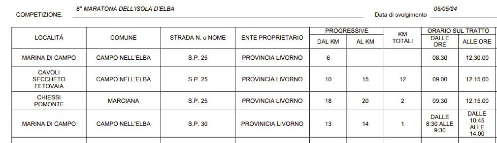 Il Comune di Campo nell'Elba informa che, in occasione della Maratona dell'isola d'Elba, che si svolgerà domenica 5 maggio, la circolazione e la sosta subiranno le seguenti modifiche.