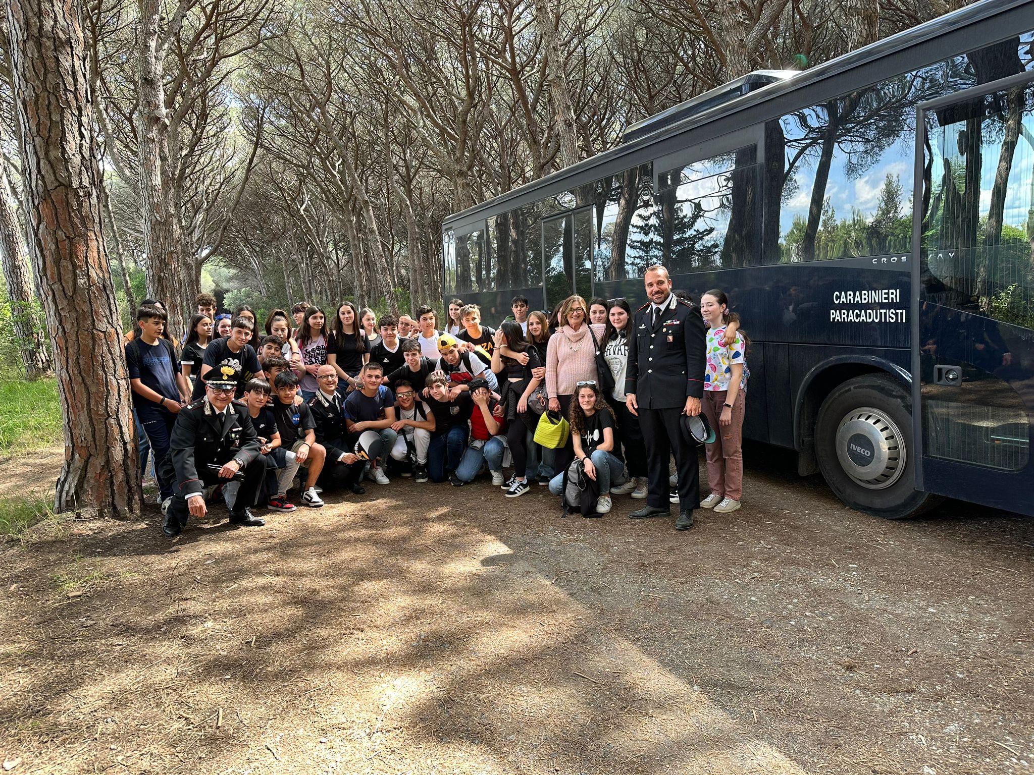 La visita è poi continuata con una inaspettata quanto stimolante novità: i ragazzi e i loro docenti sono stati accompagnati a visitare la “Riserva Naturale Statale dei Tomboli di Cecina”. Qui ad accoglierli il Ten. Col. Massimo Celati Comandante del Reparto Carabinieri Biodiversità di Cecina – comparto di specialità dell’Arma in seno ai Carabinieri Forestali – che, dopo un rifocillante pranzo al sacco, ha guidato gli studenti ed i loro docenti in una breve visita della riserva naturale, spiegando loro caratteristiche particolarità e curiosità della ricca flora presente, ma riservando un’attenzione speciale alla presentazione delle specie protette presenti.