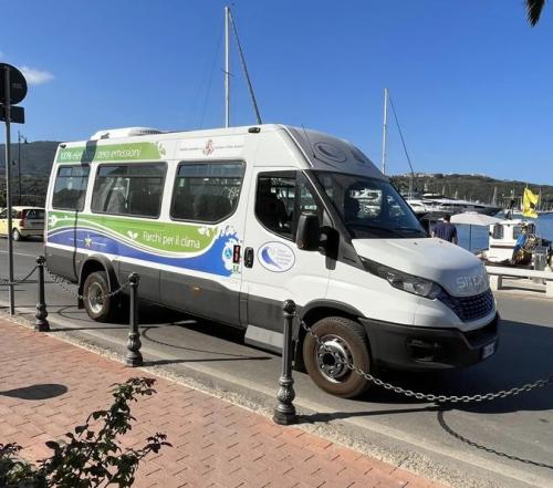 Il servizio è effettuato con mezzo elettrico a zero emissioni donato al Comune di Porto Azzurro dal Parco Nazionale Arcipelago Toscano. Il servizio è effettuato dalla società D'Alarcon Forever.