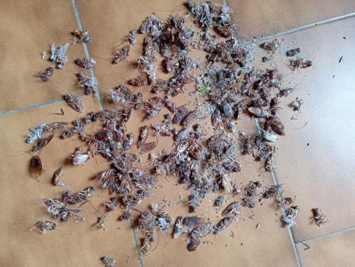 Numerosi infatti gli avvistamenti domestici anche per chi, all'arrivo nella propria seconda casa, ha trovato gli esoscheletri di numerosi esemplari - vedi foto - incappati nella polvere insetticida lasciata a terra.