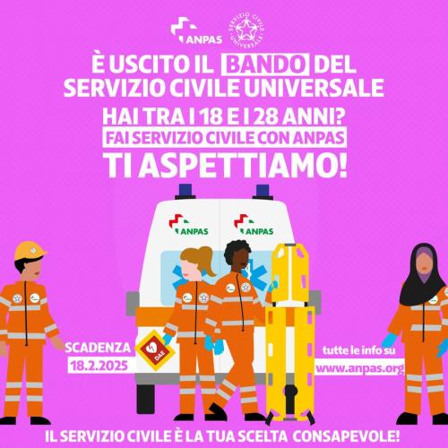 Attraverso il servizio civile, Anpas offre l’opportunità ai giovani di dedicare un anno della propria vita a favore di un impegno solidaristico inteso come impegno per il bene di tutti e di ciascuno e quindi come valore della ricerca di pace.