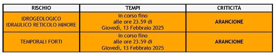Dalla sede della Protezione civile regionale si è deciso di prolungare di 24 ore (fino alla mezzanotte di giovedi 13 febbraio) l'allerta arancione per rischio idrogeolocico e temporali forti.