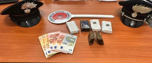 I sospetti e l’intuizione dei militari conoscitori del territorio si è rivelata fondata in quanto, all’esito della perquisizione, nella disponibilità del giovane sono stati rinvenuti 5 panetti di hashish del peso di circa mezzo chilo e 150 euro. Il denaro, di dubbia provenienza, ma ritenuto verosimilmente provento dell’attività di spaccio, è stato sottoposto a sequestro unitamente allo stupefacente.