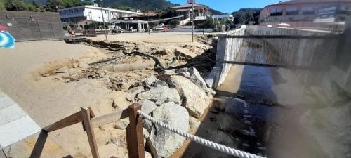 Capisco ovviamente le priorità di intervento, ma alle 8 di domenica mattina sulla spiaggia di Procchio, in prossimità della struttura in legno dei bagni pubblici, ancora non segnalata, c'è una voragine procurata dalla forza dell'acqua che ha fatto emergere sassi, fogne, vecchi tubi rotti, ecc...