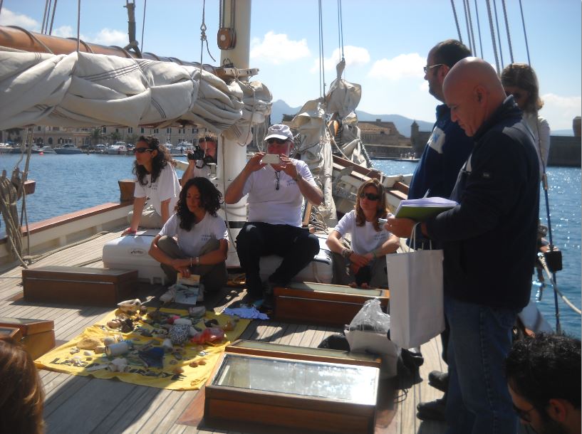 Intensa giornata di Lavoro a bordo di Goletta Verde con i bimbi elbani che hanno parlato di Santuario internazionale dei mammiferi marini con l’equipaggio e le guide ambientali e gli insegnanti.