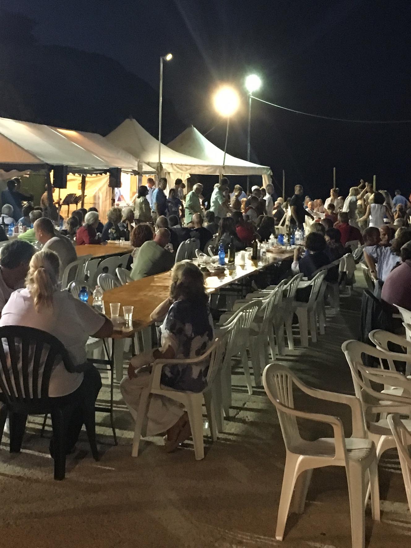 Ma la cosa forse più interessante per me era vedere i vecchi, per modo di dire – quelli delle spiaggiate all'Enfola di una volta – riprendere i loro costumi ed offrire volontariamente, celermente e con impeto al posto sicuro piatti e piatti di questo prelibato arrosto sui tavoli, girando da un tavolo a un'altro per tutta la banchina.