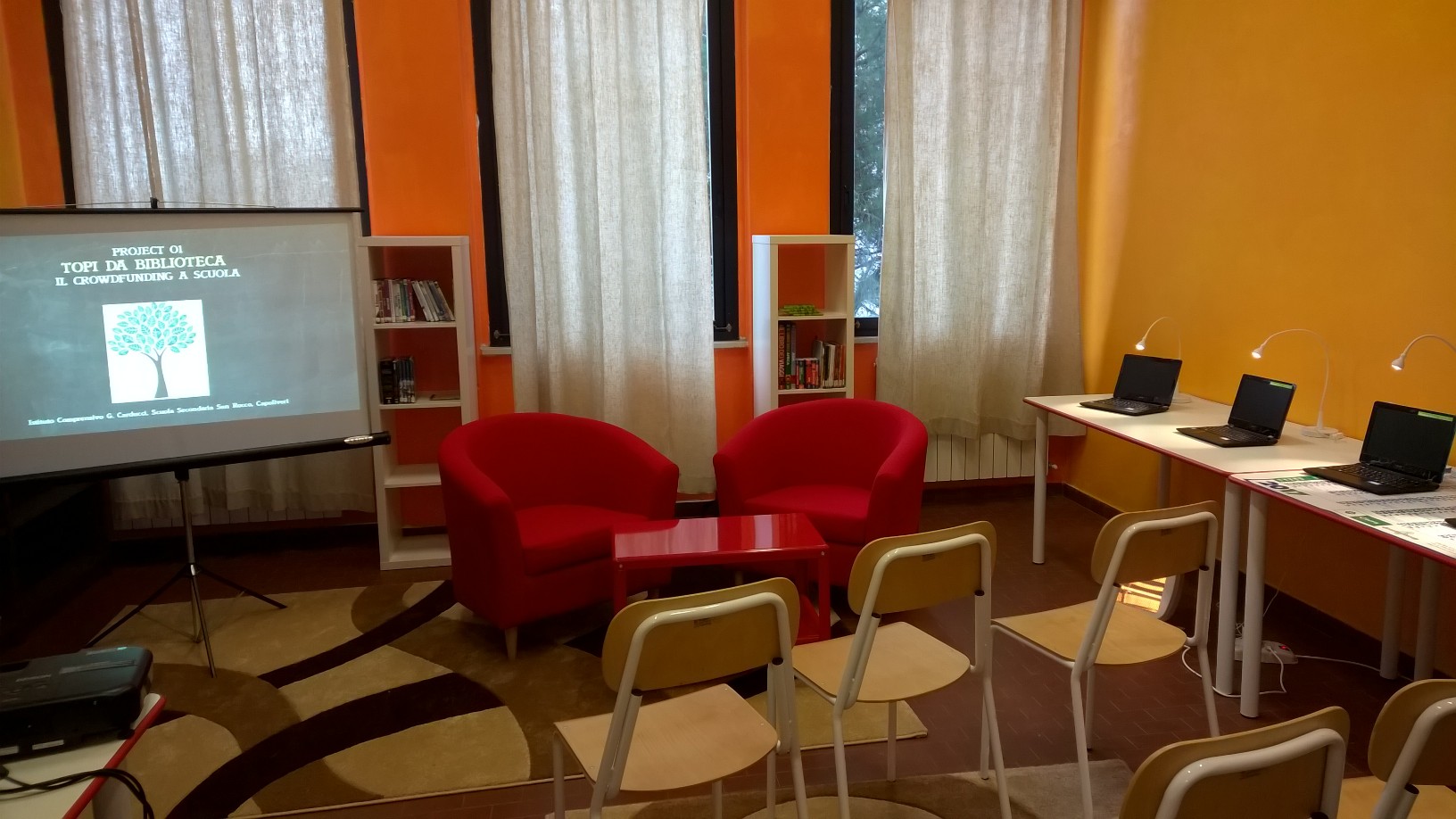Mentre tante biblioteche chiudono, mentre al posto di storiche librerie sorgono negozi di abbigliamento e gelaterie, a Capoliveri c'è una biblioteca che apre. Una piccola e accogliente biblioteca al posto di una stanza vuota e inutile. Apre all'interno della scuola pubblica, la secondaria di primo grado dell'istituto comprensivo di Porto Azzurro, ed ha tante storie da raccontare. In primis quella della sua realizzazione, avvenuta utilizzando i più moderni strumenti di finanziamento collettivo: il crowdfunding gestito dalla piattaforma schoolraising. Una scommessa dei ragazzi e dei loro insegnanti che hanno dovuto inventarsi nuovi linguaggi, come la gestione di una pagina facebook, la predisposizione di comunicati stampa per i media locali, il montaggio di brevi trailer https://www.facebook.com/topidabilbioteca/?fref=ts e foto creative, per far comprendere l'importanza dell'iniziativa e raggiungere l'obiettivo previsto.