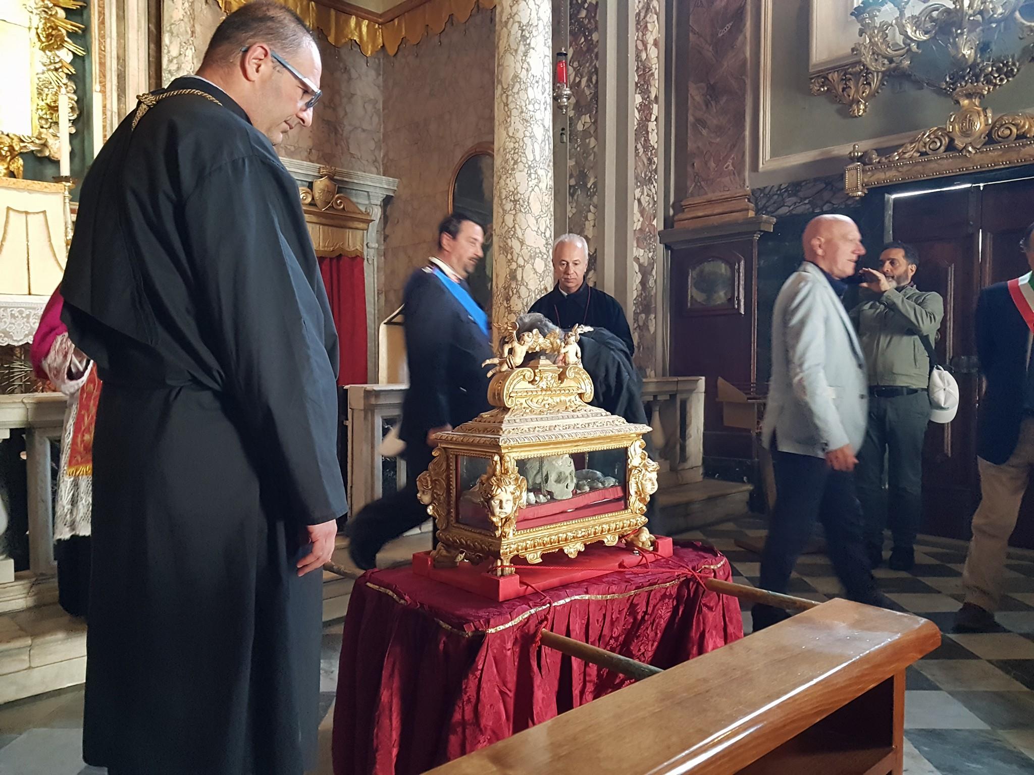Al termine della celebrazione Processione per le vie della città accompagnata dalla Filarmonica G.Pietri e dai Cavalierei dell'Ordine Equestre del Santo Sepolcro di Gerusalemme.