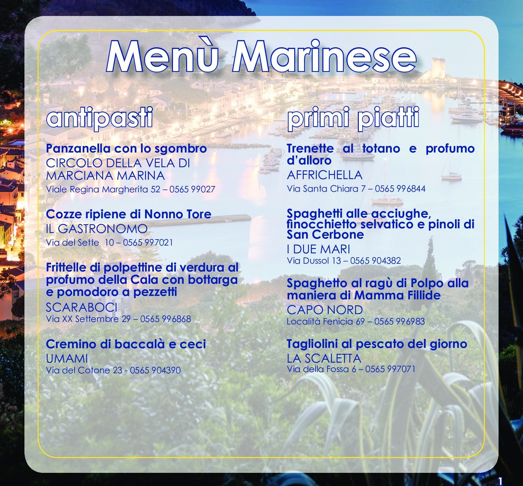 La visita, della durata di circa mezz’ora, lascerà poi spazio all’evento che a partire dalle ore 19 dopo i saluti istituzionali da parte di Alberto Peruzzini Direttore di Toscana Promozione Turistica, Luigi Vicinanza Direttore del quotidiano Il Tirreno e Gabriella Allori, Sindaco di Marciana Marina, vedrà Irene Arquint, giornalista esperta di enogastronomia, intervistare i produttori locali e conoscitori del territorio, offrendo spunti per vivere la Toscana attraverso sapori e caratteristiche locali. Cultura, natura e curiosità di un territorio in grado di offrire mille occasioni per itinerari di viaggio adatti a soddisfare le esigenze di molteplici tipologie di turismo.